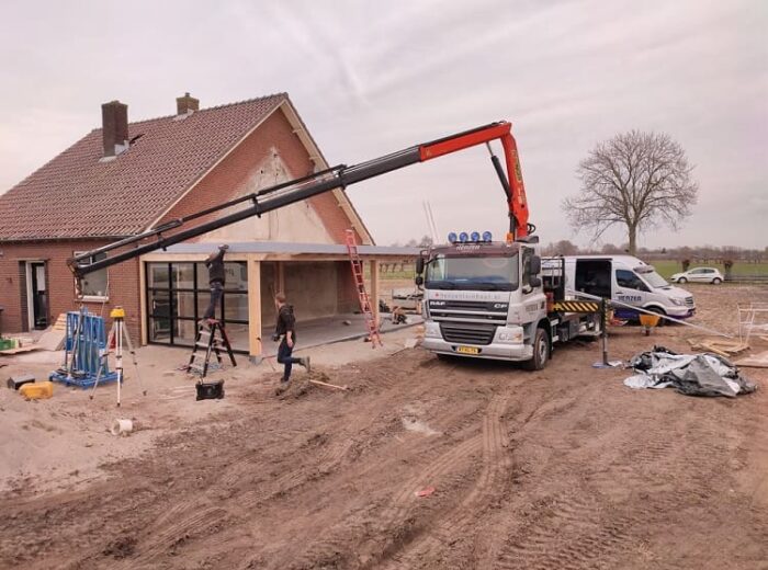 Het dak hebben we geplaatst in samenwerking met GB Installatietechniek uit Ede. Wij hebben het dak bekleed met halfhouts rabat en dit daarna wit geschilderd. Als afwerking van de dakgoot hebben we een in grijze grondverf gespoten Red Cedar boeiboord geplaatst. Het dak is vervolgens waterdicht gemaakt met bitumen en gebrand door GB Installatietechniek. Wij hebben het dak verder afgewerkt met een zinken afwerkrand en zinken regenpijp. Met de zorgvuldige afwerking is de veranda gereed en zo een volwaardige aanvulling op de woning. Al met al zijn we erg trots op het schitterende eindresultaat!