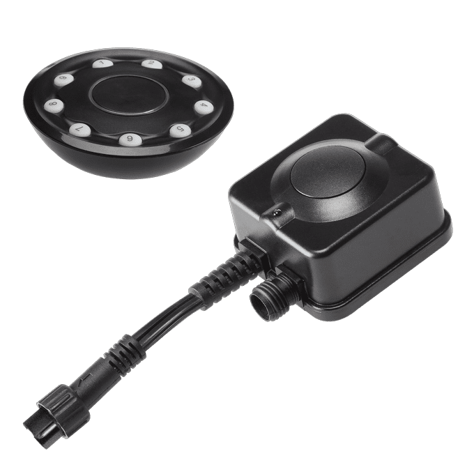 Met de afstandsbediening zet je op afstand de buitenverlichting aan of uit. Op één afstandsbediening kun je tot wel 9 lampen aansluiten. De afstandsbediening werkt op radiofrequentie en extra ontvangers zijn los verkrijgbaar.