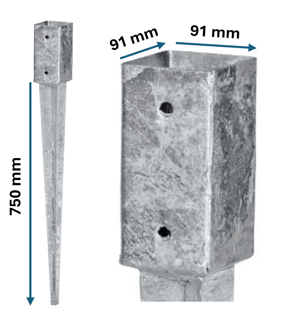 Paalhouder met pen 91 x 91 x 750 mm